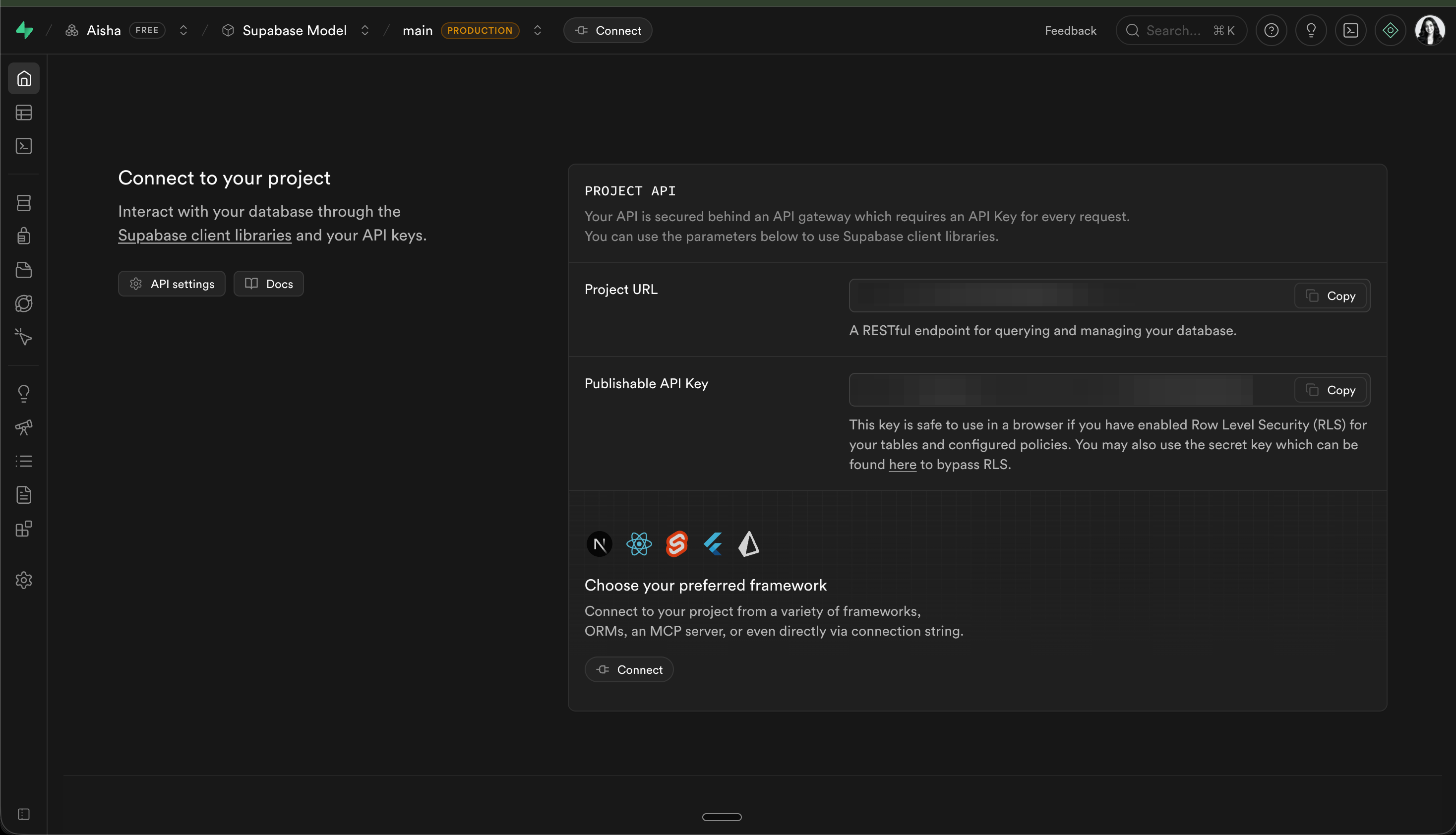 Project URLand yourAPI Key(the ‘anon’ public one).